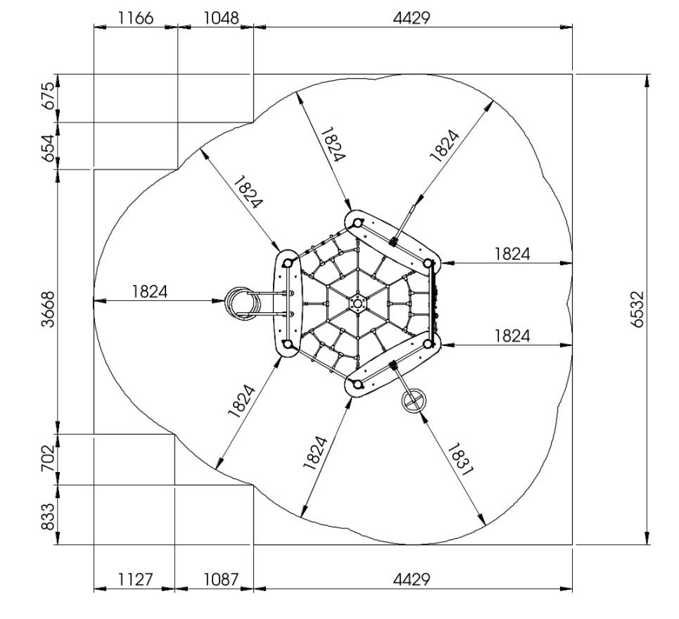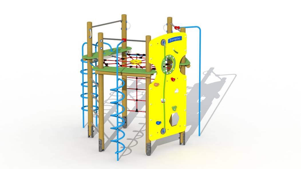 Sechseckige Klettereinheit aus Rundholz auf verzinkten Stützfüßen