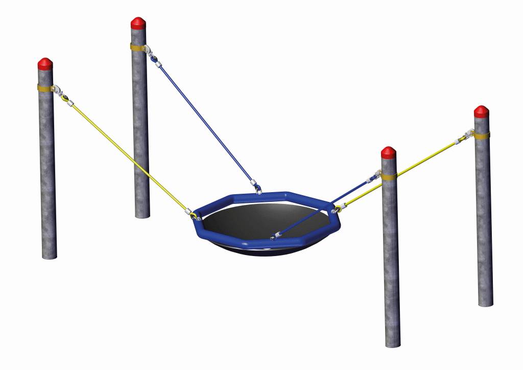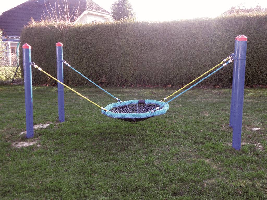 Hier schweben kleine Abenteurer ins Glück: Das „Schwebende Wabennest“ lädt Kinder ab 3 Jahren zum Greifen, Schwingen und Entspannen ein. Das runde Nest hängt sicher an vier Aufhängeseilen und wird von feuerverzinkten Stahlpfosten getragen – so entsteht ein kompakter Spielpunkt, der auf kleinen Flächen große Freude macht. Ob allein gemütlich schaukeln oder gemeinsam balancieren und sich drehen – mit HST-Spielgeräte wachsen Gleichgewicht, Koordination und Körperspannung spielerisch mit. Herkulesseile mit Stahleinlage und sauber verarbeitete Details sorgen für langlebigen Einsatz im Alltag.