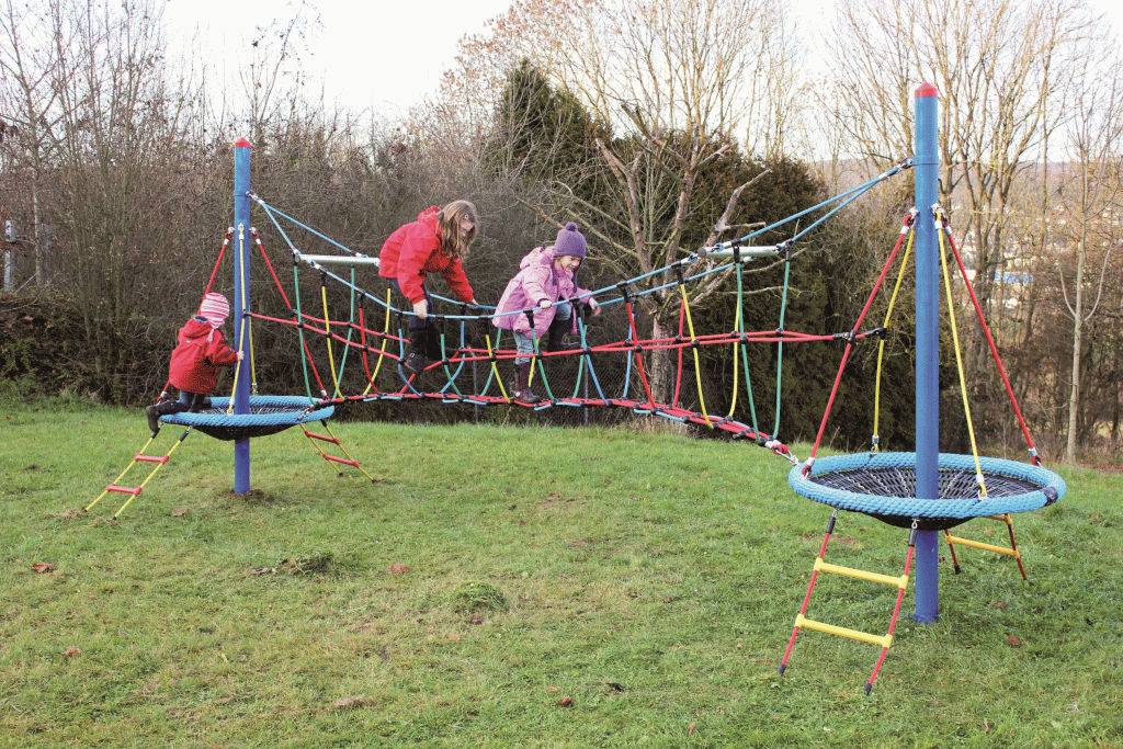 So macht draußen sein doppelt Freude: sanfter Einstieg über niedrige Fallhöhe, gut greifbare Seile und kindgerechte Höhen – ideal für Kitas, Spielplätze und Pausenhöfe. Die robuste Kombination aus feuerverzinktem Stahl und widerstandsfähigem Herkulesseil sorgt für langlebige Stabilität und ein angenehmes Griffgefühl, auch bei reger Nutzung. Ob Pause im Nest oder Runde über die Bogenbrücke – hier entstehen Lieblingswege, die jeden Tag neu entdeckt werden wollen.