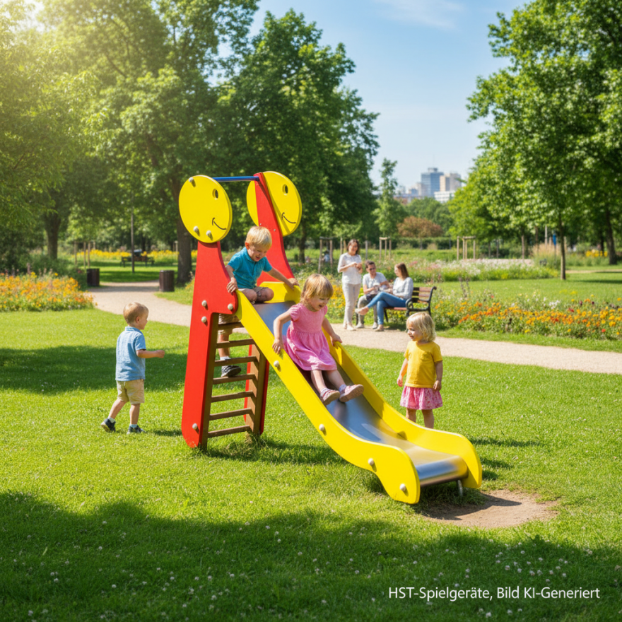 Damit es oben ruhig bleibt, hilft die Sicherheitsstange im Einstiegsbereich gegen Drängeln und sorgt für ein gutes Gefühl - auch bei den Erwachsenen. Die Rutschfläche aus Edelstahl ist robust und macht jede Rutschpartie zu einem flüssigen, tollen Erlebnis. Über die Leiter mit stabilen Sprossen geht es kindgerecht nach oben - und ganz nebenbei werden Gleichgewicht, Koordination und Körperspannung trainiert. Genau solche Spielmomente stehen bei HST-Spielgeräte im Mittelpunkt: Spaß, Bewegung und Lernen gehören hier einfach zusammen.