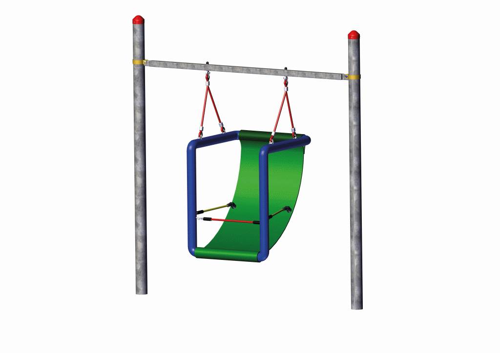 Die stabile Konstruktion mit zwei feuerverzinkten Stahl-Standpfosten und Quertraverse sorgt für einen sicheren Rahmen im täglichen Einsatz auf Spielplätzen, in Kindergärten oder Einrichtungen. Die große, umschließende Sitzfläche und die Lehnen aus Stahlrohr mit Seilumwicklung vermitteln Halt, ohne die Bewegungsfreiheit zu stark einzuschränken. So können Kinder das sanfte Hin- und Herschwingen genießen, sich entspannen oder sich über etwas mehr Schwung freuen – je nachdem, was gerade guttut.