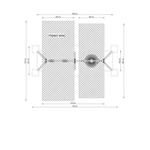 Alle Sitze sind mit feuerverzinkten Ketten aufgehängt, die mit einem Schlauchüberzug versehen sind. Das ist angenehm beim Festhalten und schützt zusätzlich vor Verschleiß. Die Kombischaukel ist in zwei Aufhängehöhen – 2,20 m oder 2,60 m – erhältlich und lässt sich damit optimal an Altersstruktur, Fallschutzaufbau und Platzverhältnisse anpassen. Die klar definierten Geräteraum- und Mindestraummaße sowie die angegebenen Fallhöhen erleichtern die sichere Planung. So entsteht ein vielseitiger Schaukelbereich, der sowohl Einzel- als auch Gruppenerlebnisse ermöglicht und Kinder immer wieder in Bewegung bringt.
