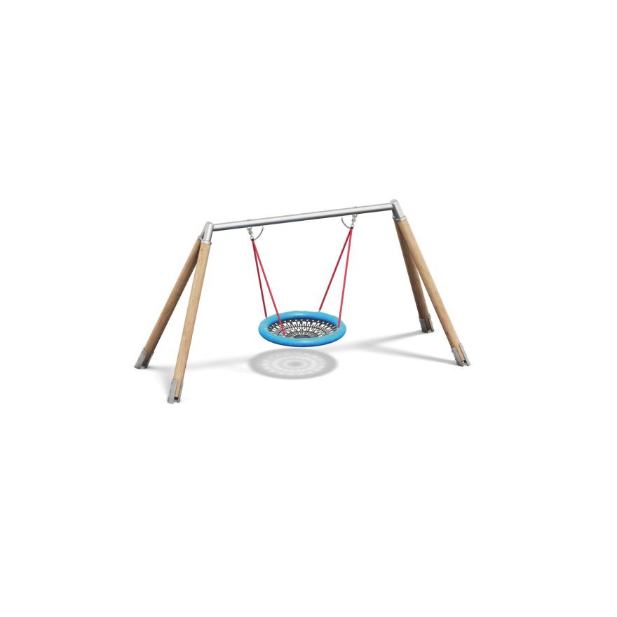 Das stabile Schaukelgestell aus Holz mit einem robusten Metall-Kopfbalken macht die Anlage langlebig und bestens geeignet für den täglichen Einsatz auf Spielplätzen, Schulhöfen oder in Kindergärten. Das Vogelnest wird inklusive Ketten und Aufhängelagern geliefert und ist so ideal auf das Gestell abgestimmt. In Verbindung mit weiteren Bewegungselementen von HST-Spielgeräte wird die Vogelnestschaukel schnell zum Mittelpunkt jeder Spiel- und Aufenthaltsfläche im Freien.