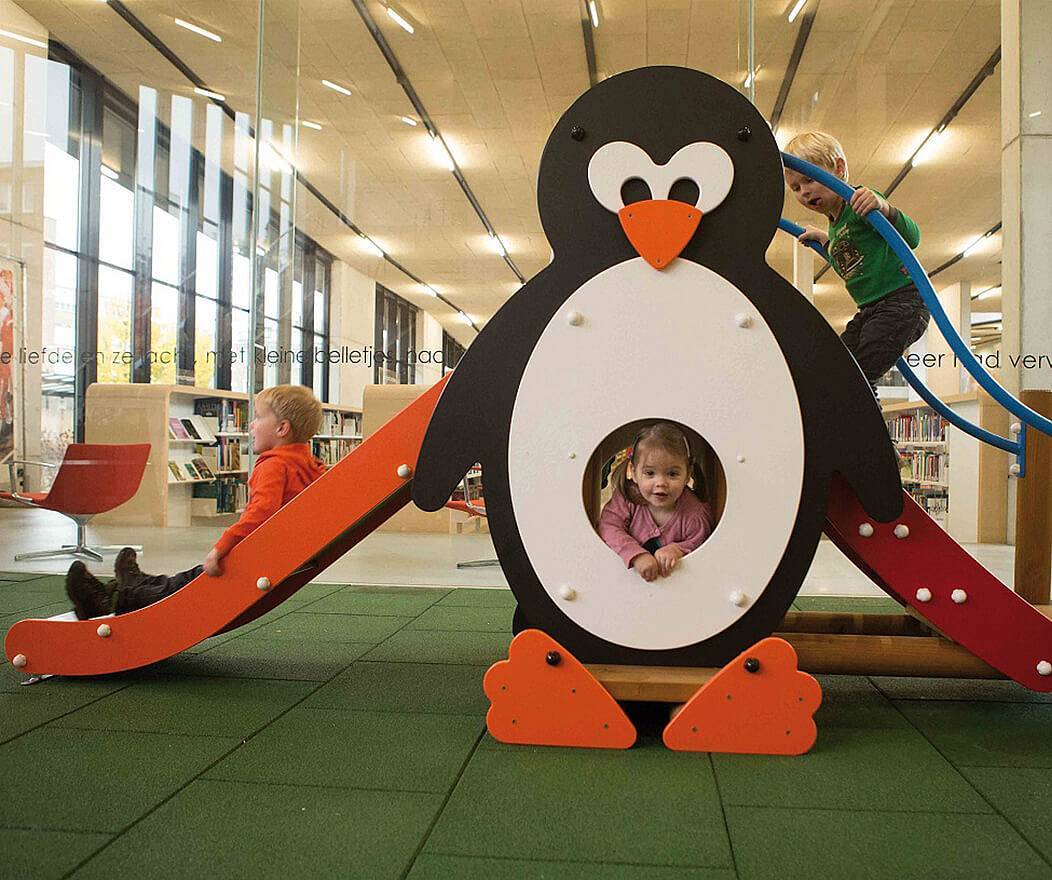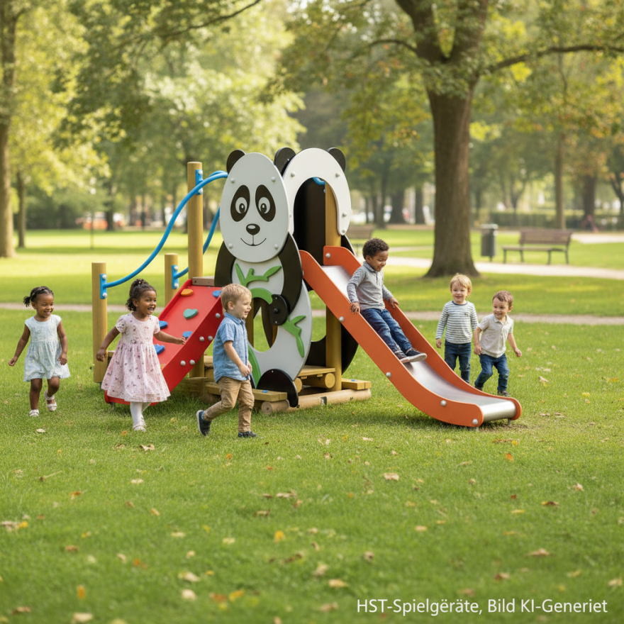Panda & Pinguin laden zur Rutschparty ein - die Kinderrutsche "Happy duo"