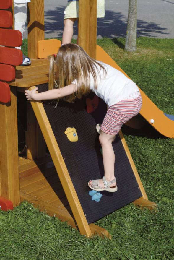 Aufstiege: Kletterwand mit Kunststoff-Klettergriffen