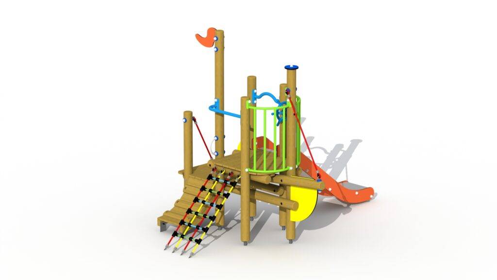 Die unterschiedlichen Aufstiege sprechen Kinder mit ganz verschiedenen Fähigkeiten an: Mutige nehmen das Kletternetz, vorsichtigere Kinder wählen die Holzrampe oder die Treppe mit Geländer. So üben sie spielerisch Gleichgewicht, Koordination und Kraft. Die farbigen Seile, Flaggen und Bootselemente laden zu Rollenspielen ein – mal ist das Schiff im Hafen, mal mitten im Sturm. HST-Spielgeräte verbindet hier abwechslungsreiche Bewegung mit vielen Anreizen für Fantasie und gemeinsames Spiel.