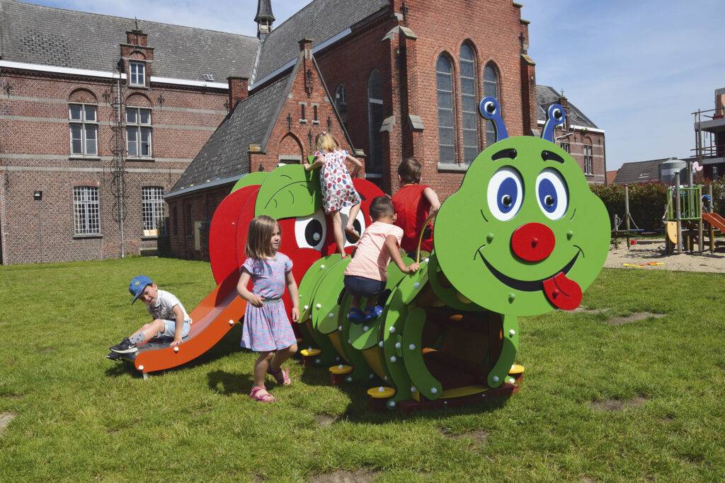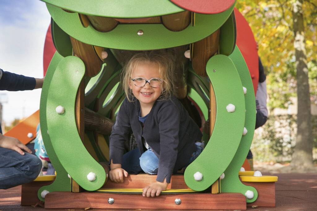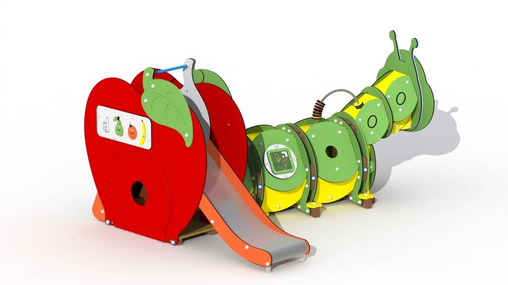 Die Raupe (kurze Version mit Apfel) ist ein fröhliches Spielgerät für Kinder von 2 bis 7 Jahren, das gleich mehrere Spielideen verbindet. Die Kinder können durch den Raupenkörper kriechen, sich verstecken, wieder herausklettern und zum Abschluss über die Rutsche in Apfelform hinuntersausen. So entstehen immer neue kleine Abenteuer, bei denen Motorik, Gleichgewicht und Fantasie gleichermaßen gefragt sind.