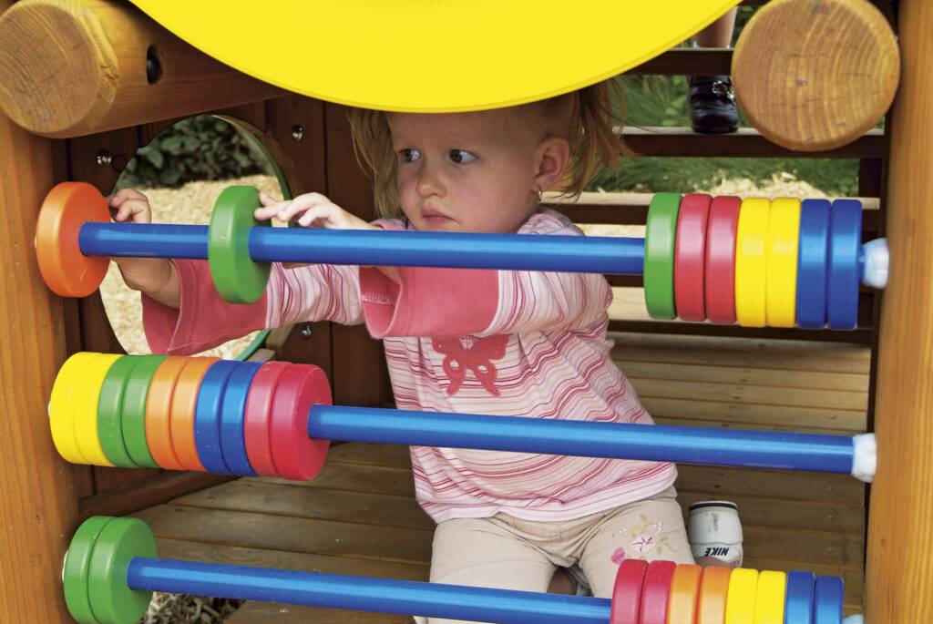 Spielelemente Abakus mit HDPE-Scheiben, Kunststofflenkrad, Teleskop, Drehspiel