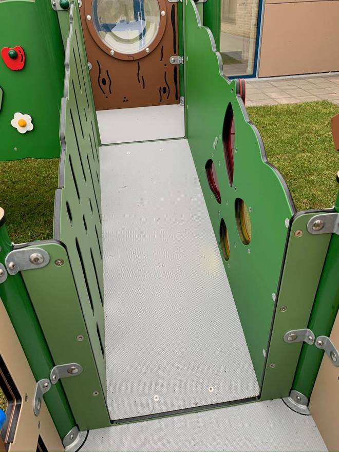 Besonders schön: Filippa lädt nicht nur zum Toben ein, sondern auch zum gemeinsamen Spielen. Der kleine "Laden" mit "Verladeklappe" macht Rollenspiele sofort lebendig – einkaufen, verkaufen, klingeln, lachen. Und überall gibt es etwas zu drehen, zu schieben oder zu ertasten: Blumen, Schmetterlinge und Bienen regen kleine Finger an und bringen spielerisch Gespräche in Gang. Genau diese Mischung aus Bewegung, Fantasie und Interaktion macht Filippa zu einem echten Lieblingsort – auch im Sortiment von HST-Spielgeräte.