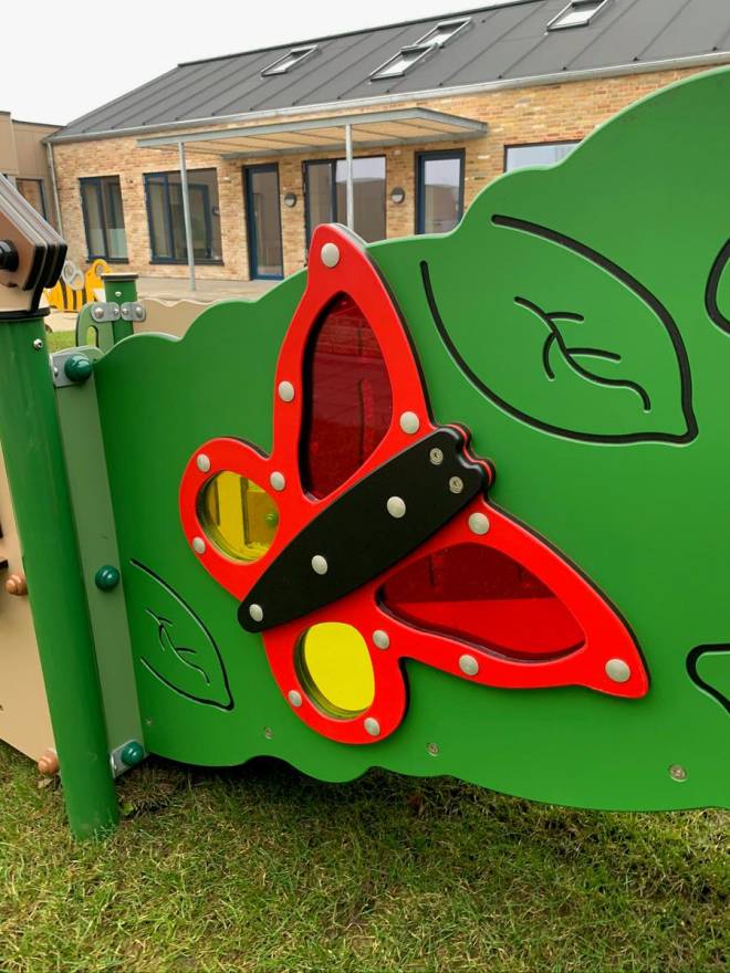 Motorik-Elemente: schräge Brücke, dynamische Drehelemente (Blumen, Schmetterlinge, Bienen)
