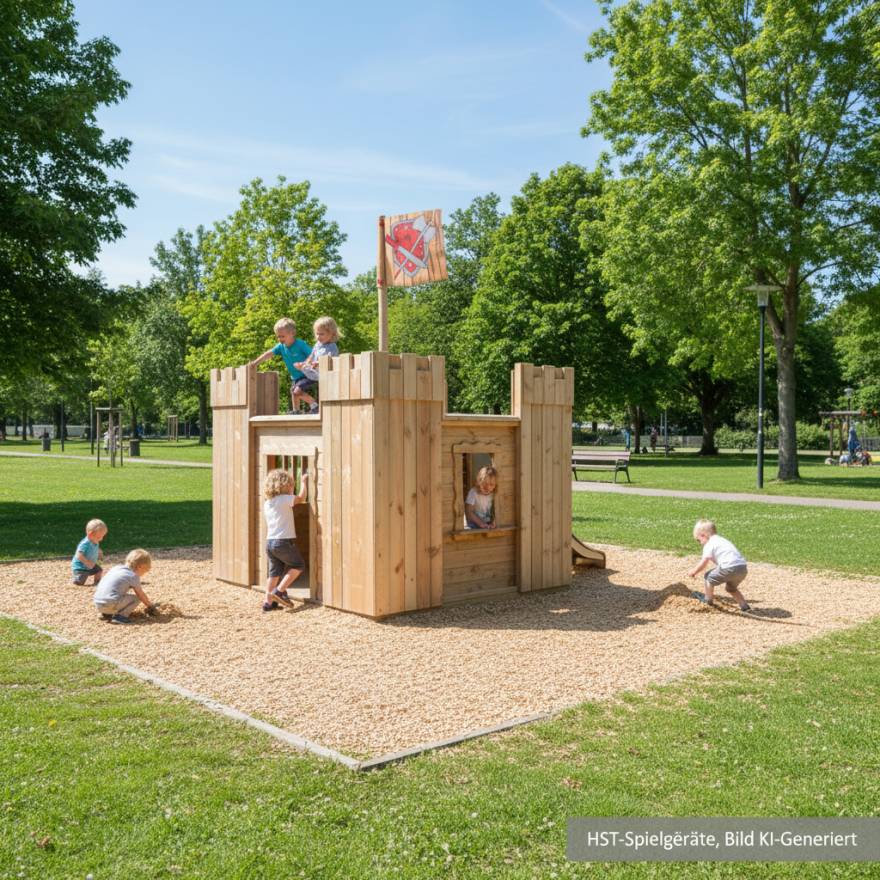 Durch die vielen liebevollen Details entsteht immer wieder ein neues Spiel: am Kerkerfenster wird verhandelt, im Burgladen werden Sandkuchen „bezahlt“ und durch die Öffnungen wird Ausschau gehalten, ob Freunde anrücken. So verbindet die Ritterburg Bewegung, Kreativität und Miteinander - ganz so, wie Kinder es lieben. Im Sortiment von HST-Spielgeräte ist die Ritterburg Artus ein Highlight für lebendige Spielplätze mit großer Fantasie.
