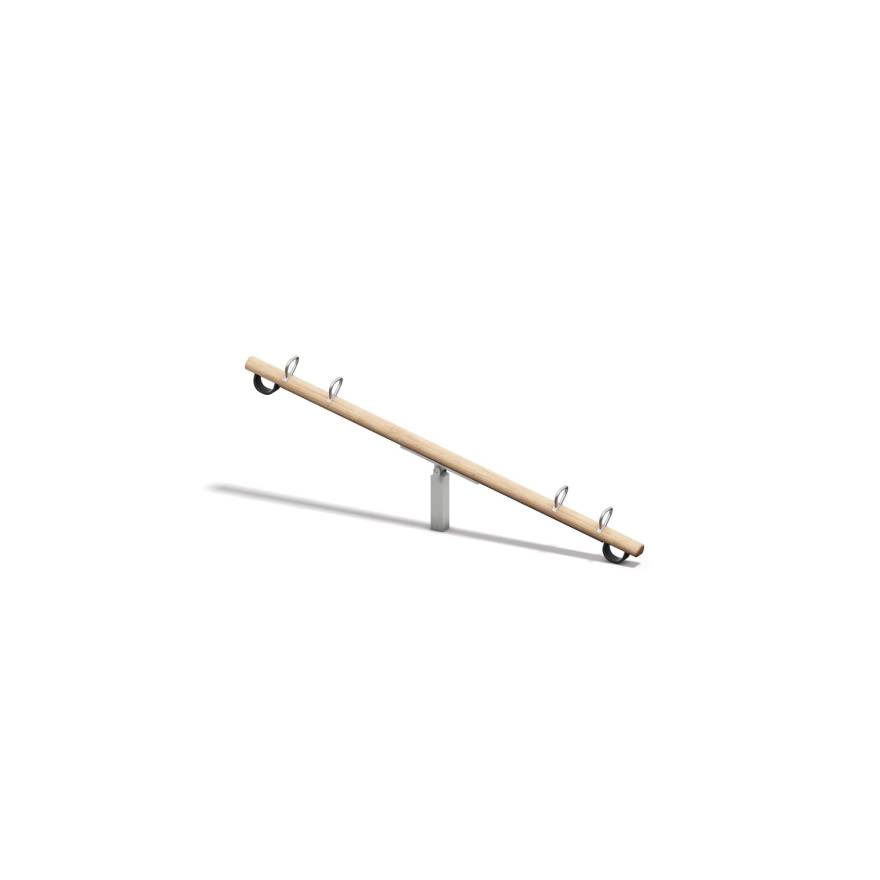 Die Konstruktion ist auf den Alltag im Außenbereich ausgelegt: ein stabiler Wippbalken aus Holz, griffige Haltegriffe aus Edelstahl und eine wartungsfrei gelagerte Achse. Stoßdämpfer sorgen für ein angenehmes Abfangen am Ende der Bewegung - so bleibt das Wippen dynamisch, aber komfortabel. Eine starke Wahl für Spielplätze, Kitas und Schulhöfe - und ein echtes Highlight, das Kinder sofort "besetzen" möchten.